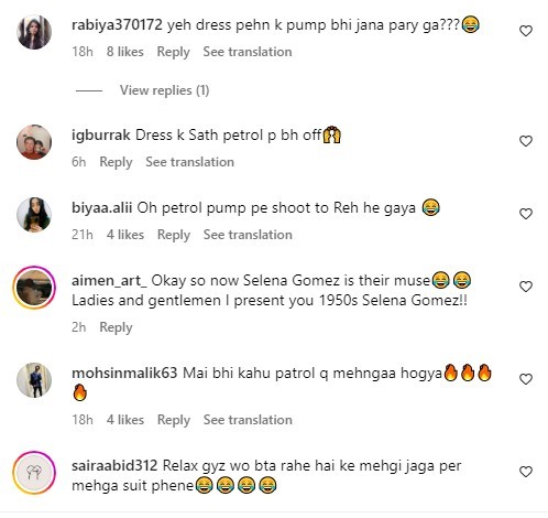 One user remarked, "Relax, guys, they want to tell you that she is wearing expensive clothes at an extravagant location (petrol pump)."