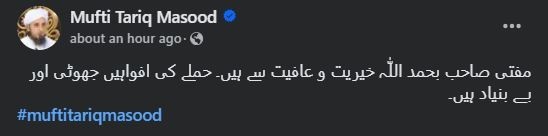 "Mufti Sahib is in good health," the post read.