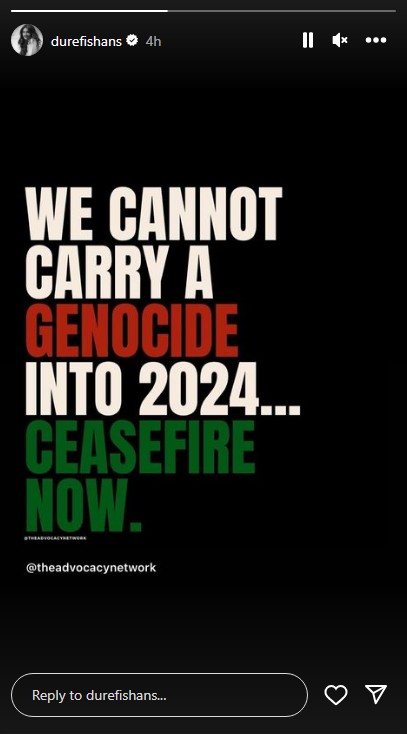 The ‘Jaisay Aaapki Marzi’ star Dur-e-Fishan Saleem called for the cessation of Israeli atrocities in 2024.