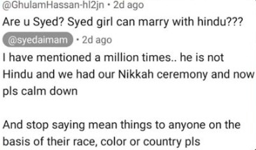 Recently, a social media user questioned how she, as a "Syed," could marry a non-Muslim.
