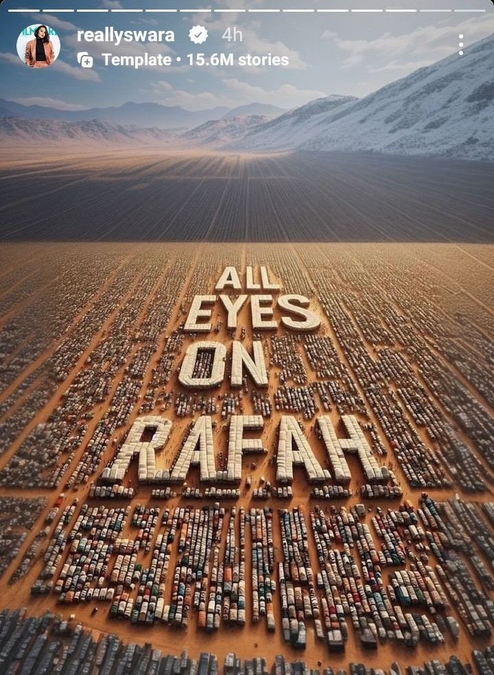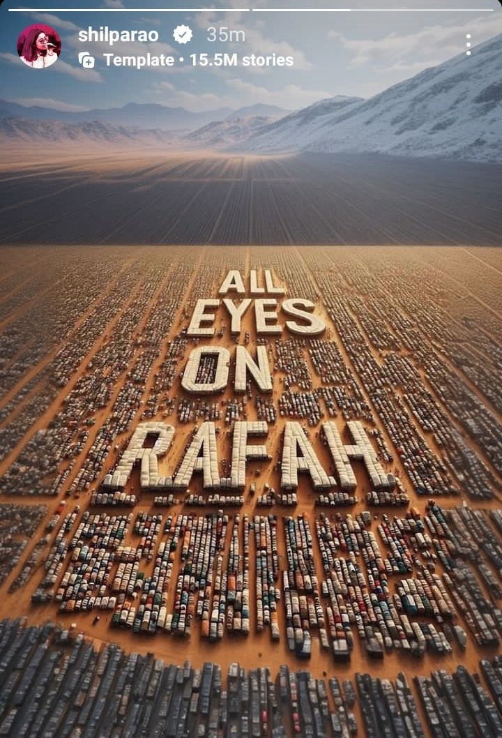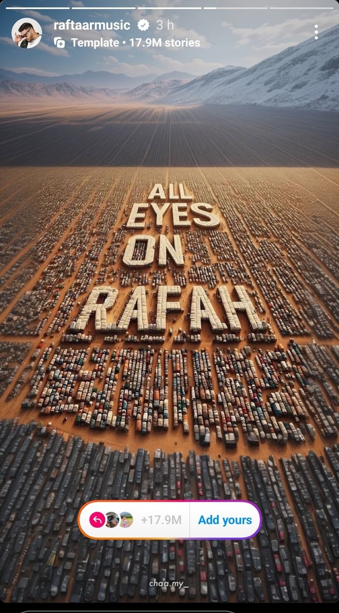 The "All Eyes on Rafah" template has gone viral on social media, with over 22.2 million reshares on Instagram in less than 24 hours.