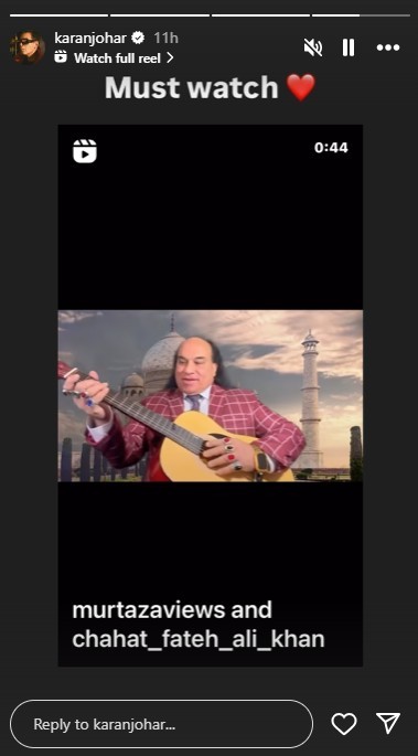 Karan Johar took to his Instagram story on Monday and shared Chahat Fateh Ali Khan’s music video.