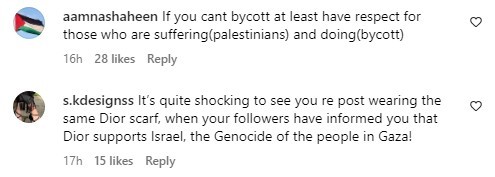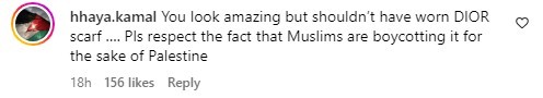 One of Sarah’s fans commented, “You look amazing but you should not have worn a DIOR scarf..pls respect the fact that Muslims are boycotting it for the sake of Palestine."