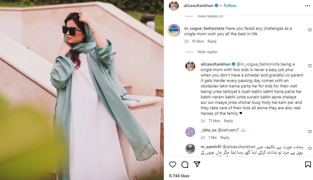 During a Q&A session on her Instagram post, a fan asked Aliza if she faced challenges raising her children as a single mother.