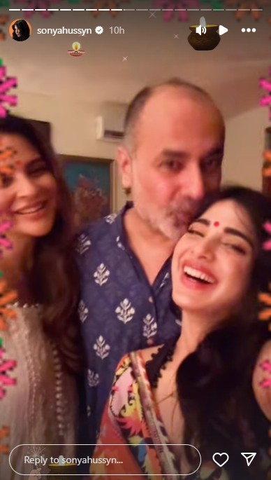 Renowned actor Sonya Hussain celebrated Diwali with fellow celebrities from the entertainment industry, donning traditional attires and enjoying a delicious feast.