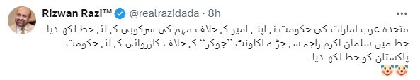 The letter stressed that such measures were vital to preserving the strong bilateral relations between Pakistan and the UAE.
