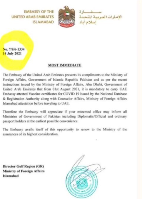 The content of the alleged letter appears to have been altered. The original letter from 2021 had informed the Pakistani government about the importance of carrying NADRA-issued COVID-19 vaccination certificates for travelers visiting the UAE.
