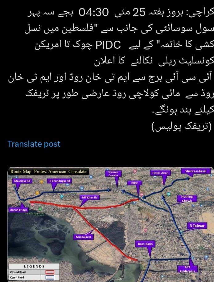 Karachi civil society's rally against genocide in Palestine: These roads to remain closed tomorrow