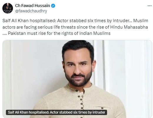 “Muslim actors face life threats in India:” Fawad Chaudhry reacts to Saif Ali Khan’s stabbing incident