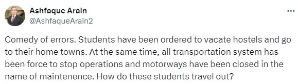 Earlier, the Islamabad administration ordered the evacuation of all student hostels in the city on Friday. Meanwhile, the Punjab government imposed Section 144 across the province from November 23 to November 25, banning all protests, gatherings, rallies, sit-ins, and similar activities.