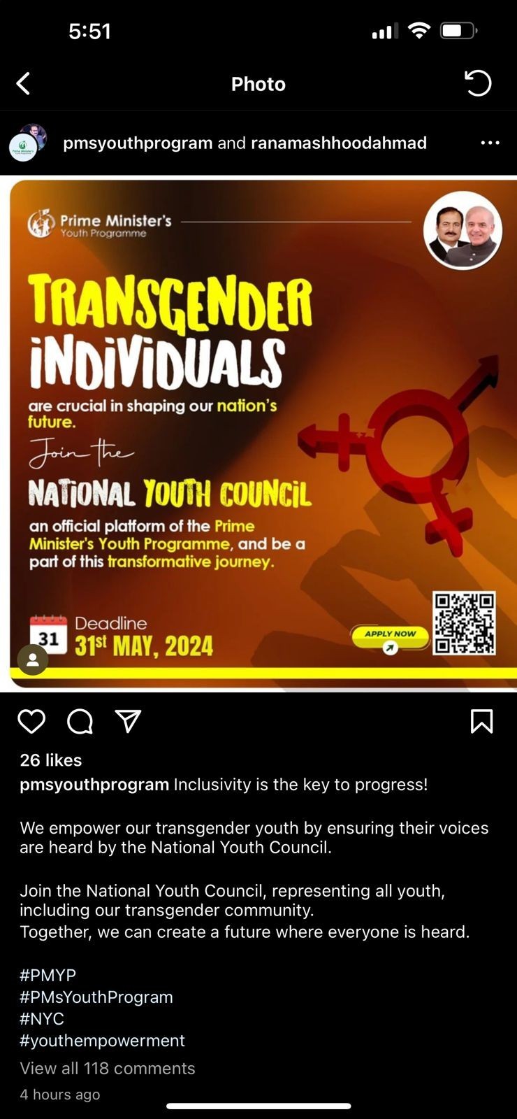Prime Minister's Youth Program (PMYP) is facing backlash on social media platforms after the platform asked transgender people to register themselves on the platform by terming them crucial for the country's progress.