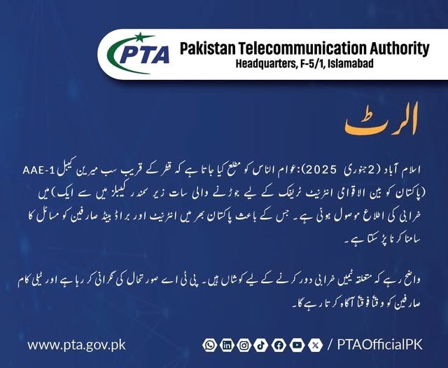 A spokesperson for the PTA confirmed that they had received notifications regarding the cable issue and issued a warning about the fault, indicating that internet and broadband users across the country may encounter connectivity challenges.