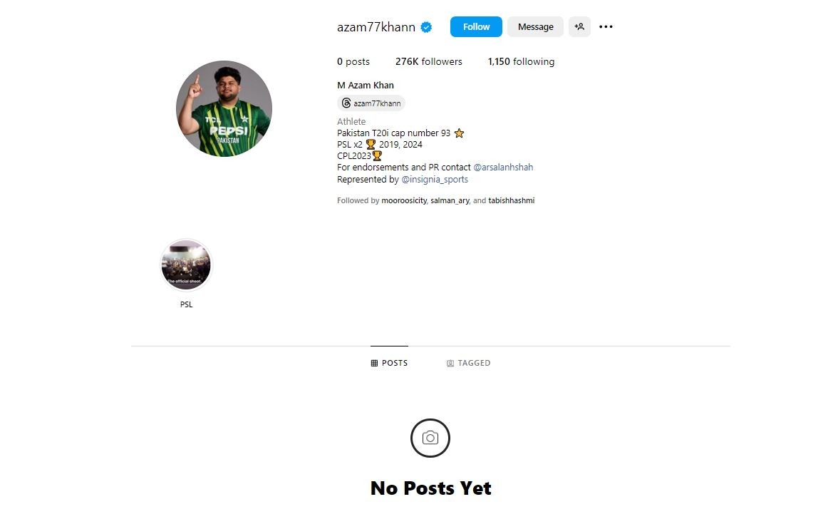 Pakistan wicketkeeper-batter Azam Khan has deleted all Instagram posts or probably archived them following criticism over his lackluster performance in the recent T20 series against England.