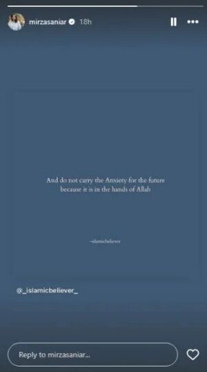 "And do not carry the Anxiety for the future because it is in the hands of Allah," she said to her fans via Instagram story.