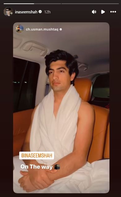 Shah reshared a video of a social media user on his Instagram story, in which he and his father were seen wearing Ihrams while taking a ride to Makkah.