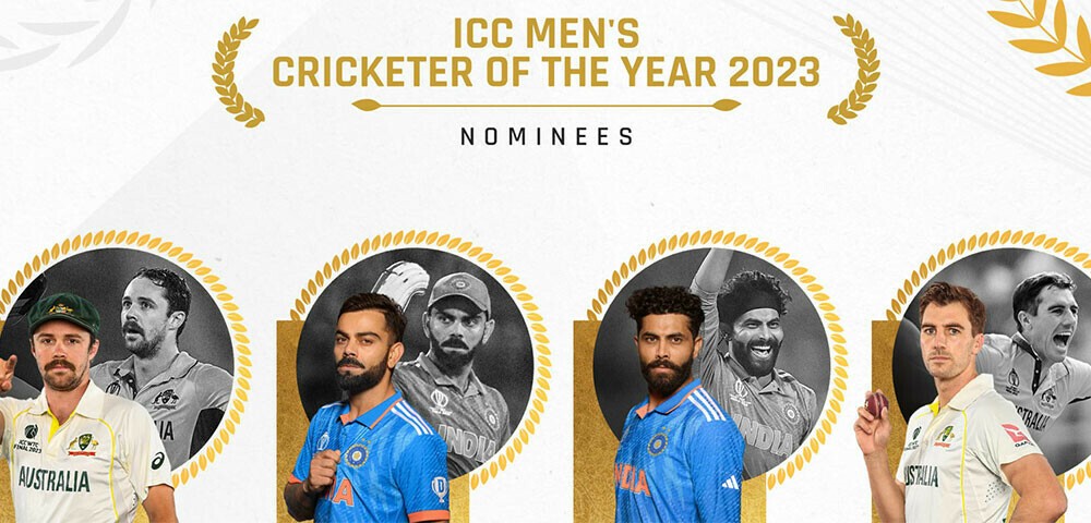 The race for the coveted ICC Men's Cricketer of the Year includes the Test Championship and ODI World Cup-winning Australian captain, Pat Cummins, alongside his teammate Travis Head, and Indian batters Virat Kohli and Ravindra Jadeja.