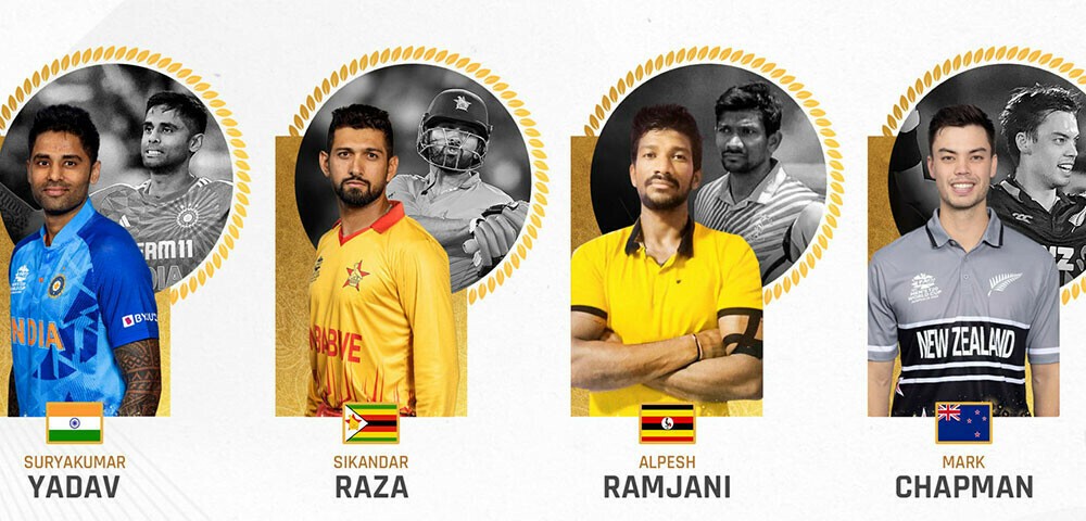 The T20 Cricketer of the Year nominations feature India's Surya Kumar Yadav, Zimbabwe's Sikandar Raza, Uganda's Alpesh Ramjani, and New Zealand's Mark Chapman, showcasing a diverse array of talent.