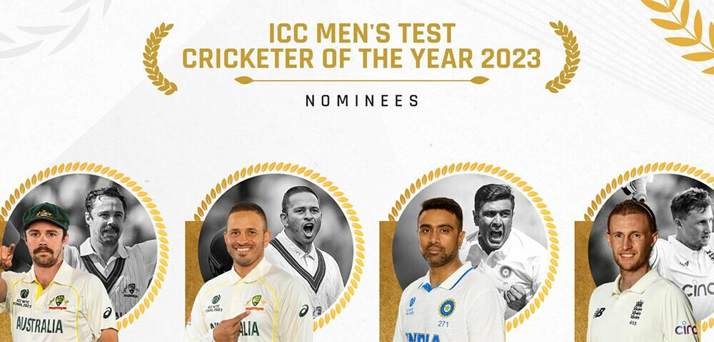 Australia's Travis Head and opener batter Usman Khawaja, Indian spinner Ravichandran Ashwin, and England's Joe Root are nominated for the ICC Test Cricketer of the Year.