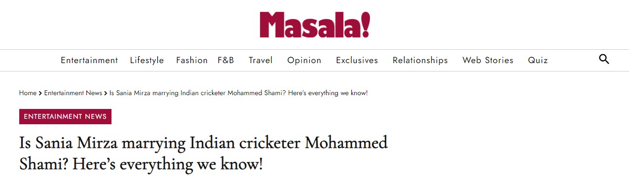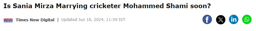 Several Indian media outlets have claimed that Sania Mirza and Mohammad Shami will get married in August this year. However, there is no evidence to support these claims.
