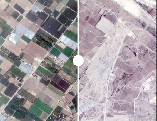 Before and after satellite images showed the devastating impact of Israeli attacks on the once-fertile regions of Beit Lahiya.