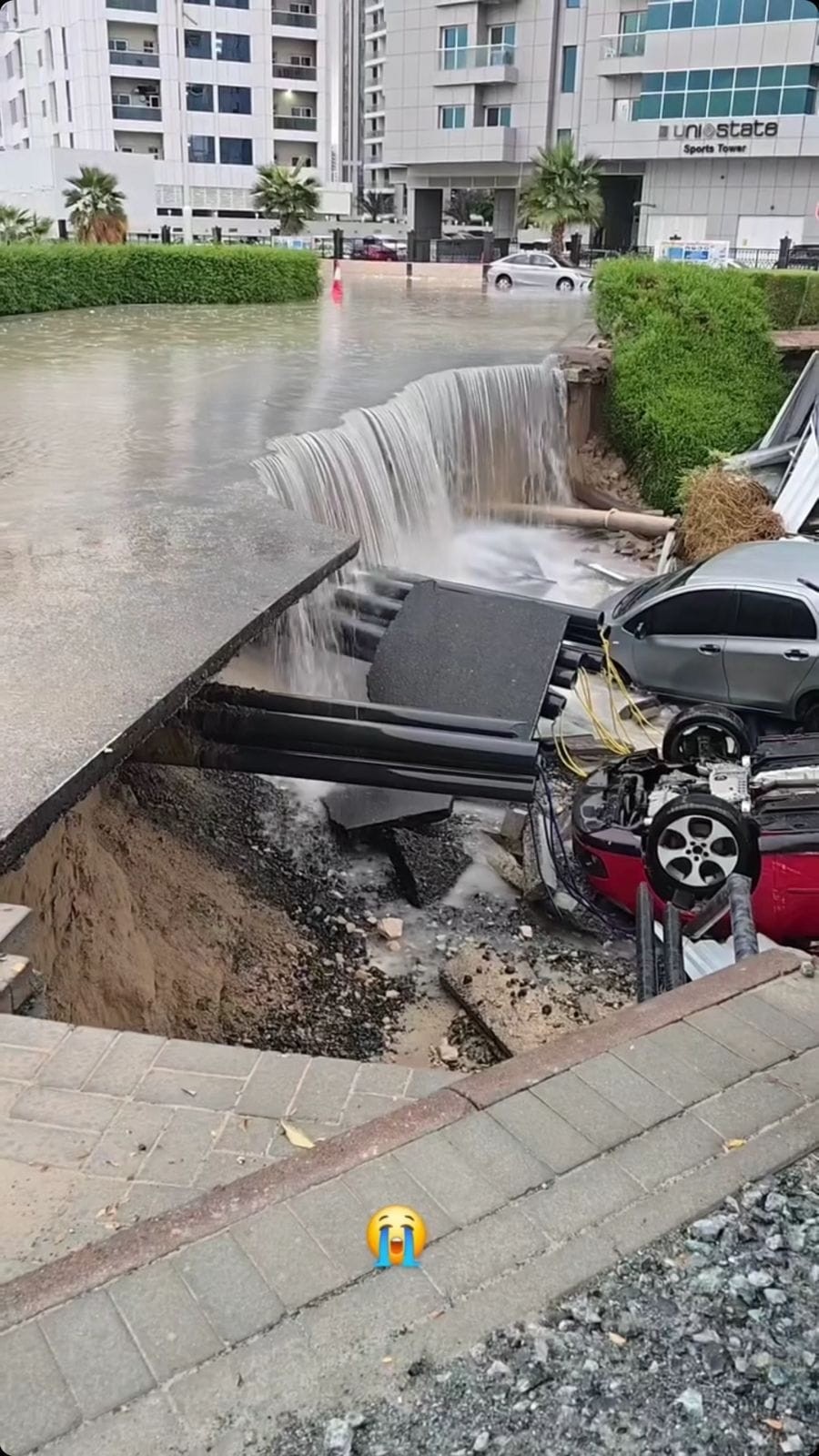 Widespread flooding was reported on roads due to the continued rainfall, while flights in and out of Dubai International Airport were experiencing delays.