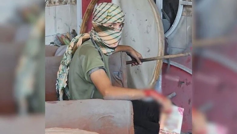 One viral photo shows a child sitting on a couch in a destroyed house, mimicking Sinwar's style.